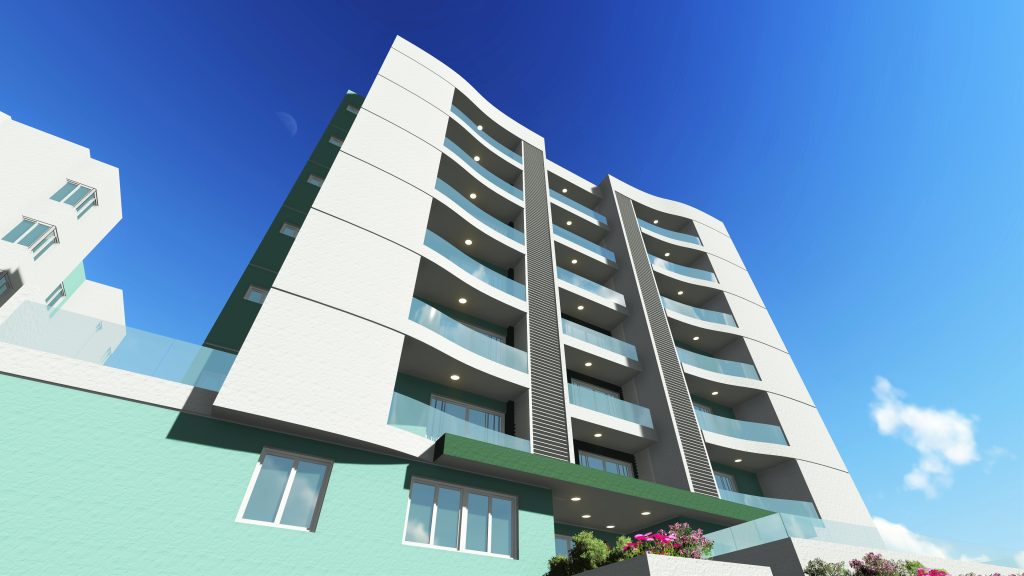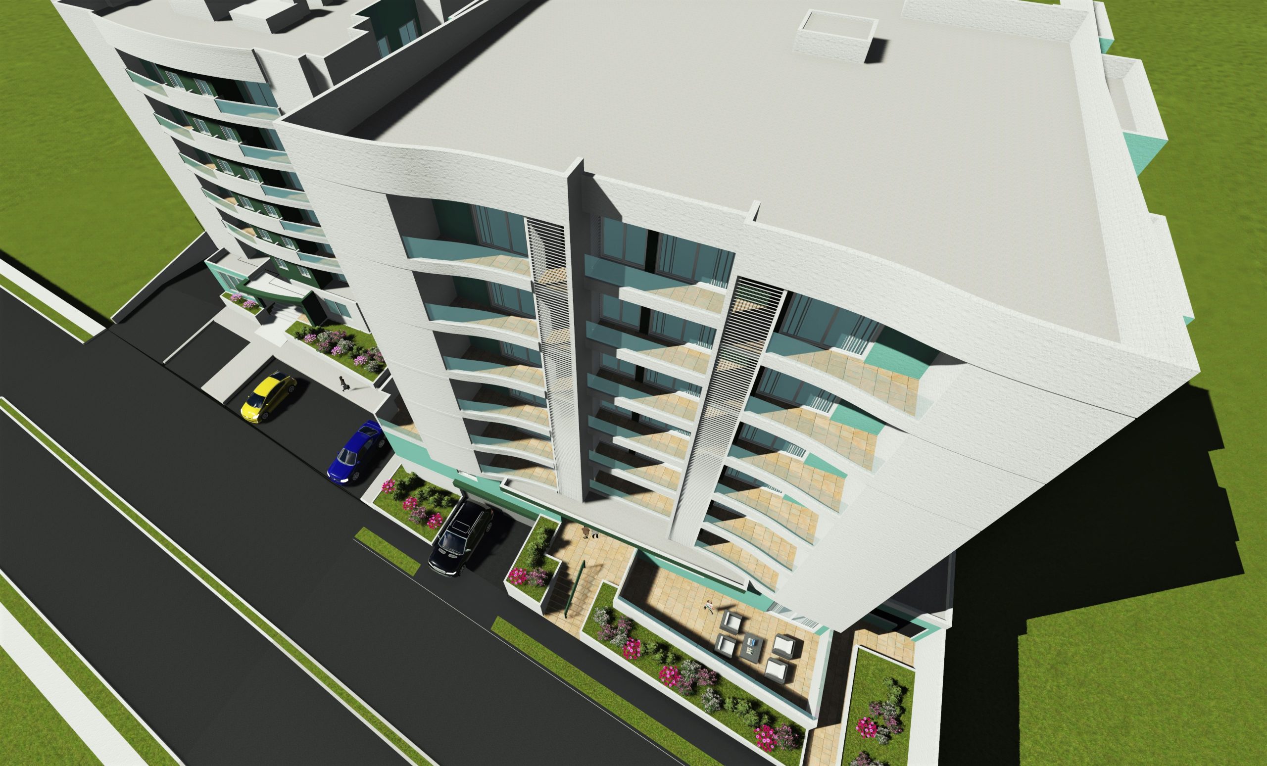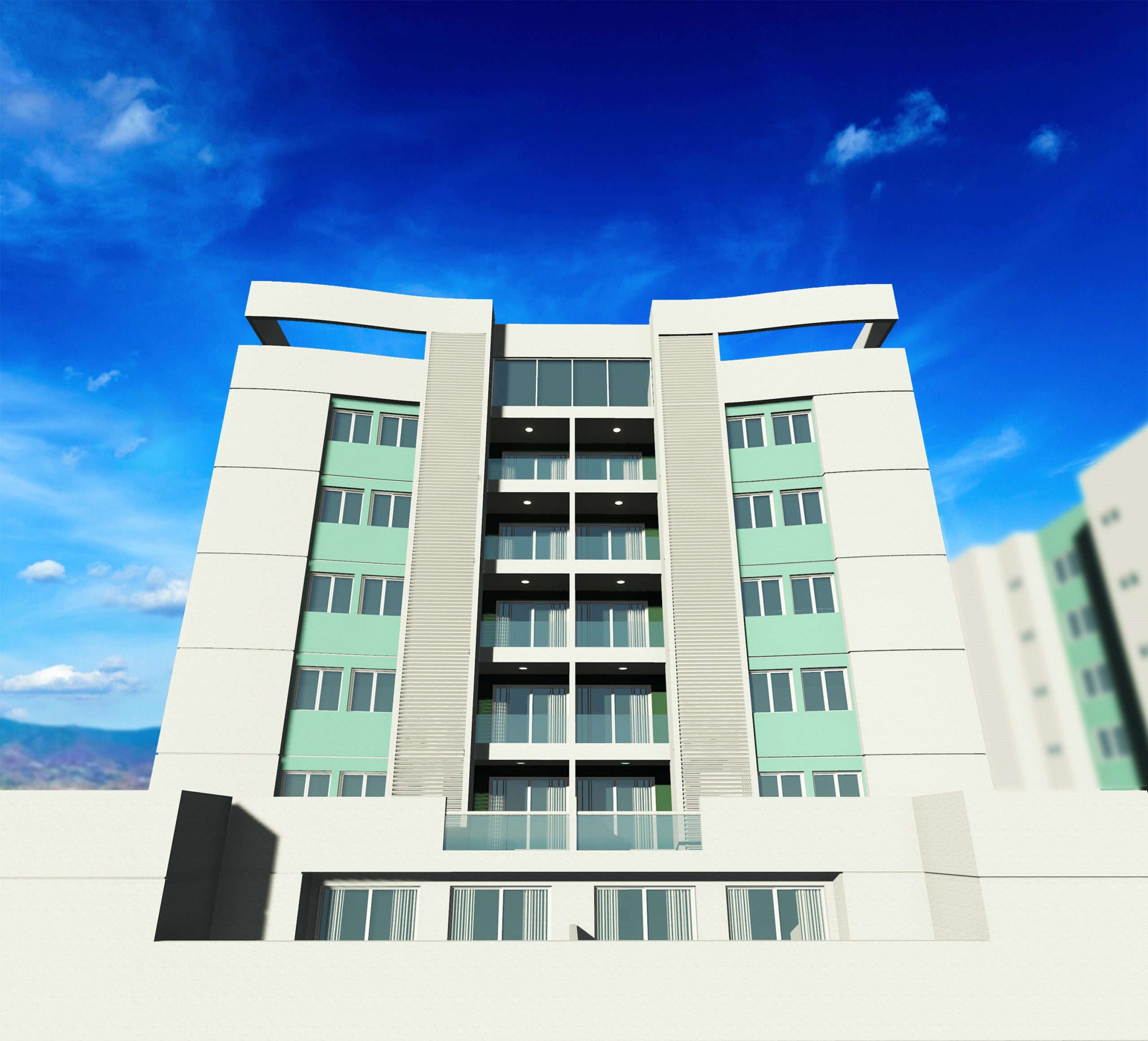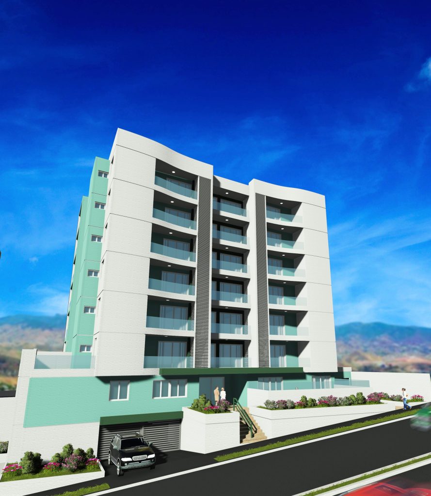 Diseño arquitectónico de un edificio de siete niveles de apartamentos y 2 sótanos para estacionamientos, con capacidad para 47 apartamentos y 106 plazas de estacionamiento vehicular con un área de 8,251.30 m².