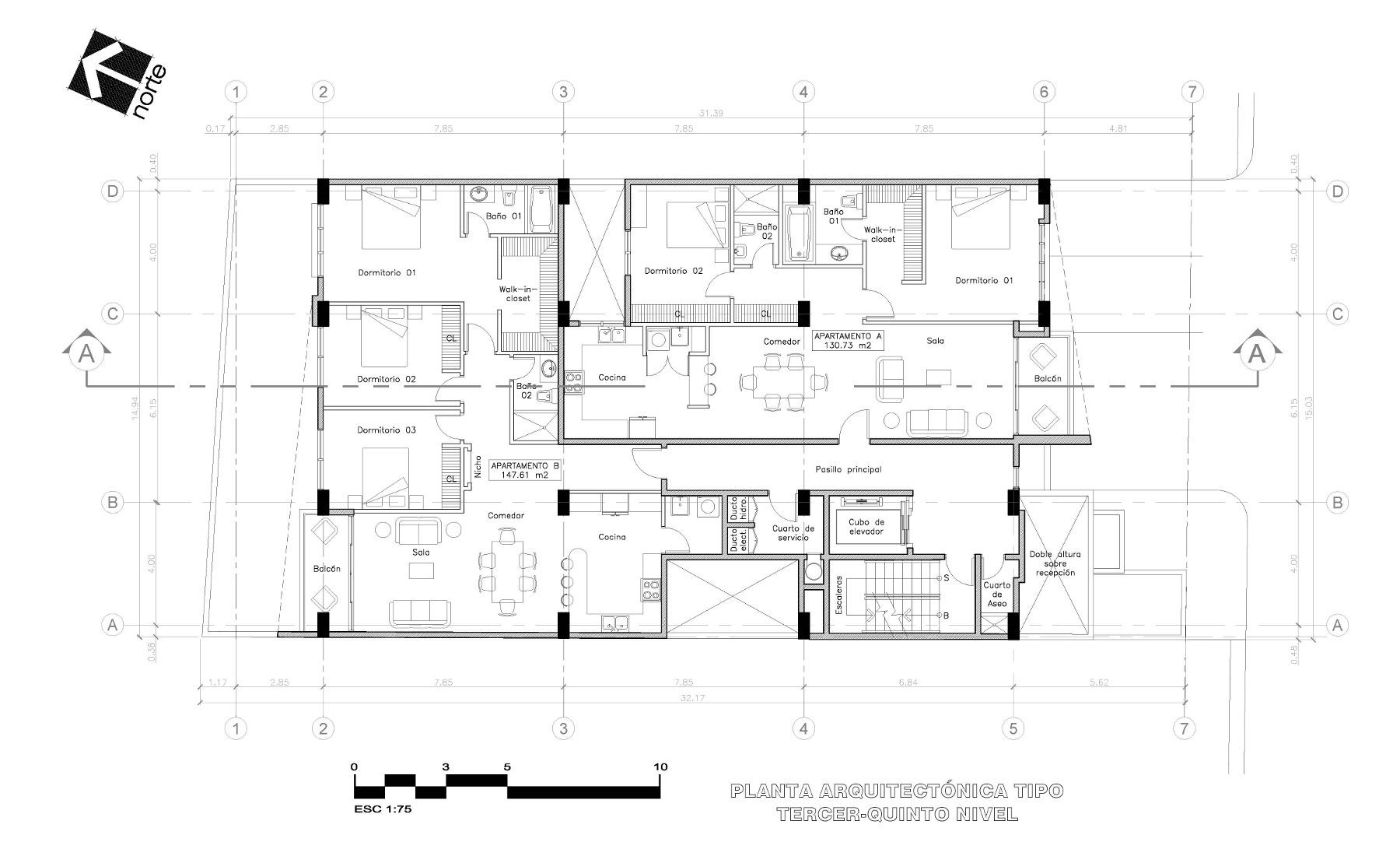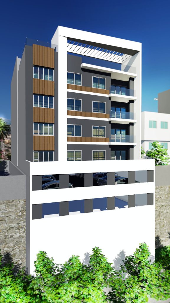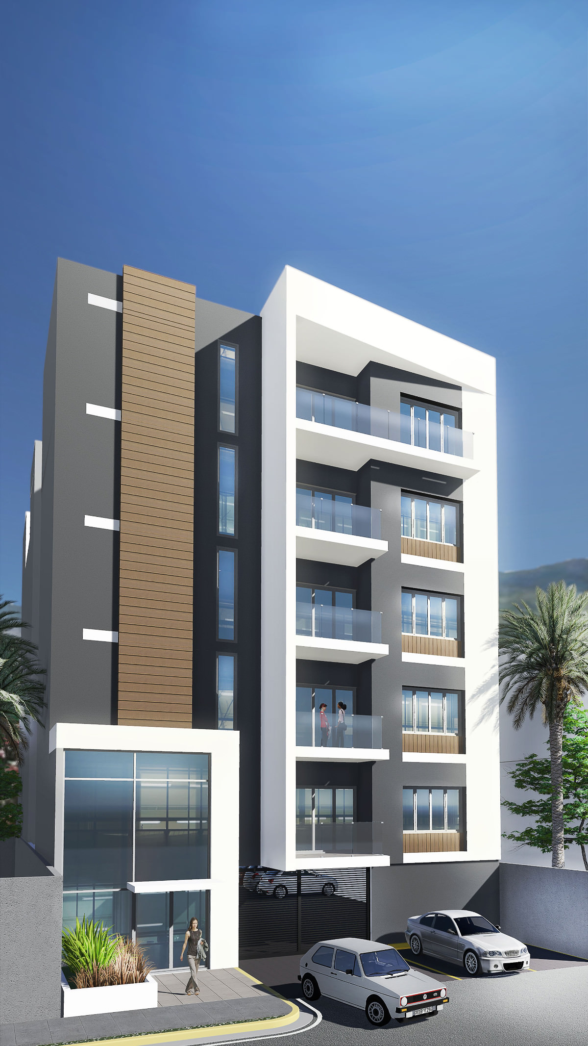 Apartamentos diseñados para un concurso promovido por VIVIENDAS S.A en el año 2014. Se propuso un edificio de apartamentos desarrollado en 6 niveles, de los cuales 4 están destinados para alojar 8 apartamentos, dos por nivel, de entre 130m² a 145m² cada uno. En el nivel de calle se encuentra el estacionamiento, proyectado para 18 vehículos. En el nivel superior se encuentran las áreas comunes de recreación y esparcimiento. El diseño busca una volumetría limpia y vanguardista, que llame la atención por sus líneas simples y que aporte al contexto de una zona residencial exclusiva en la ciudad capital.